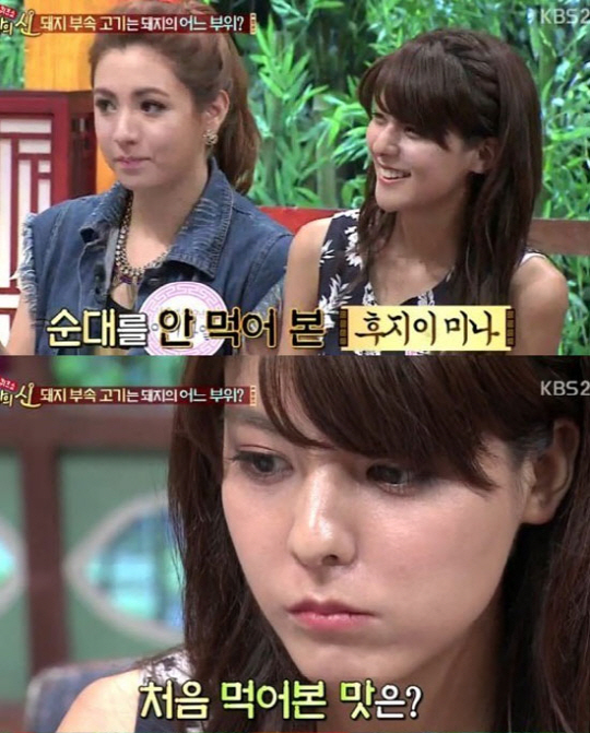 방송인 후지이 미나가 첫 순대먹방에 감탄을 자아냈다.