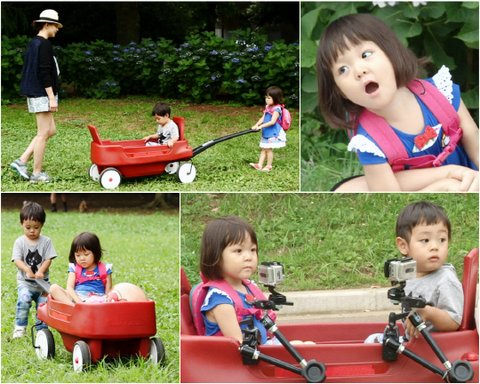 최근 진행된 KBS2 '해피선데이-슈퍼맨이 돌아왔다' 녹화는 '멀리 가려면 함께 가라'는 주제로 진행됐다. 이날 추사랑은 집에 찾아온 사촌동생 하루토와 공원 나들이에 나섰다. 엄마 야노시호가 곳곳에 카메라가 숨어있는 집을 낯설어 하는 하루토를 위해 공원 나들이를 추진한 것. 야노시호는 추사랑과 하루토를 유아용 수레에 태워 공원으로 향했고 하루토는 집에서 탈출하자마자 밝은 모습을 되찾았다. 공원 곳곳을 활보하며 호기심 본능을 폭발시키는 하루토의 모습에 추사랑은 하루토 챙기기에 나섰다. 하루토를 태운 수레를 놀라운 힘으로 끌며 파워 베이비의 모습을 보인 것. 이에 야노시호는 서툰 한국말로 "대단해"를 연발하며 웃음을 선사했다.