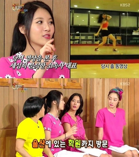 이날 유라는 "예전에 한창 (개인) 홈페이지가 유명했는데, 일일 메인에 내가 춤 춘 영상이 걸렸다"면서 "그걸 본 소속사 40군데에서 연락이 왔다"고 밝혔다.