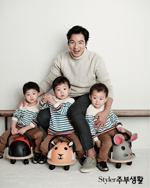 송일국 화보에서 세쌍둥이와 훈훈해", "