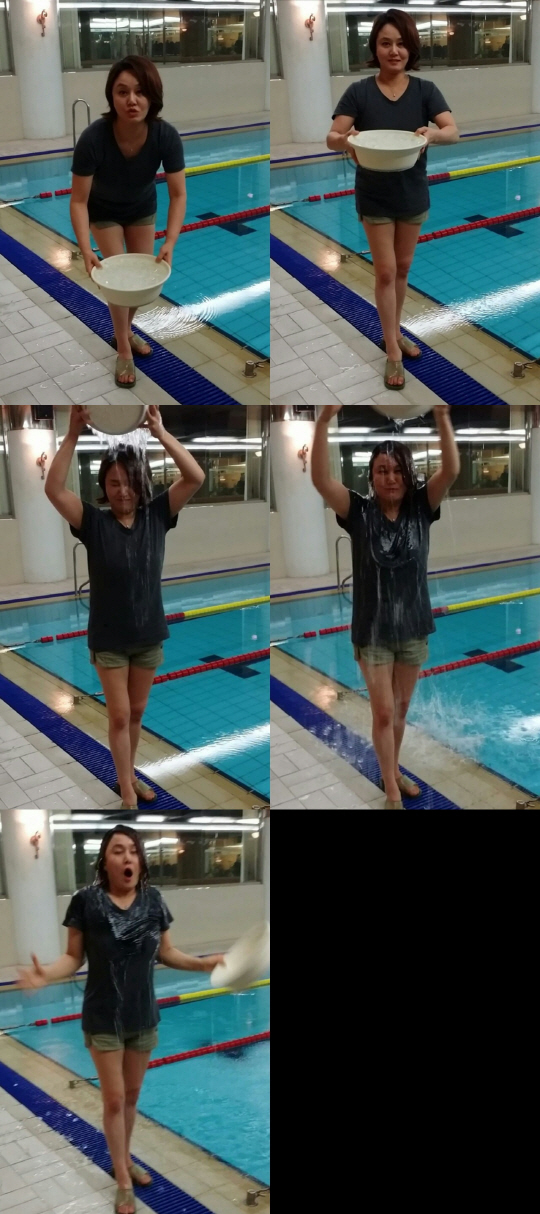 개그맨 이경실이 루게릭 병 환우들을 돕기 위한 모금행사인 아이스 버킷 챌린지에 동참했다.