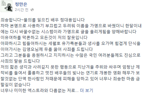 다음은 정대용 사과문 전문