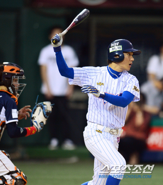 연예인 올스타와 프로야구 은퇴선수들이 올스타 자선야구를 열었다. 25일 목동구장에서 '다문화 가정과 넥센 히어로즈가 함께하는 '한은회-연예인 올스타 자선 야구대회'가 열렸다. 현대 왕조 시절 특급 마무리 조용준이 타자로 나와 볼넷을 얻고 있다. 목동=정재근 기자cjg@sportschosun.com/2014.08.25/