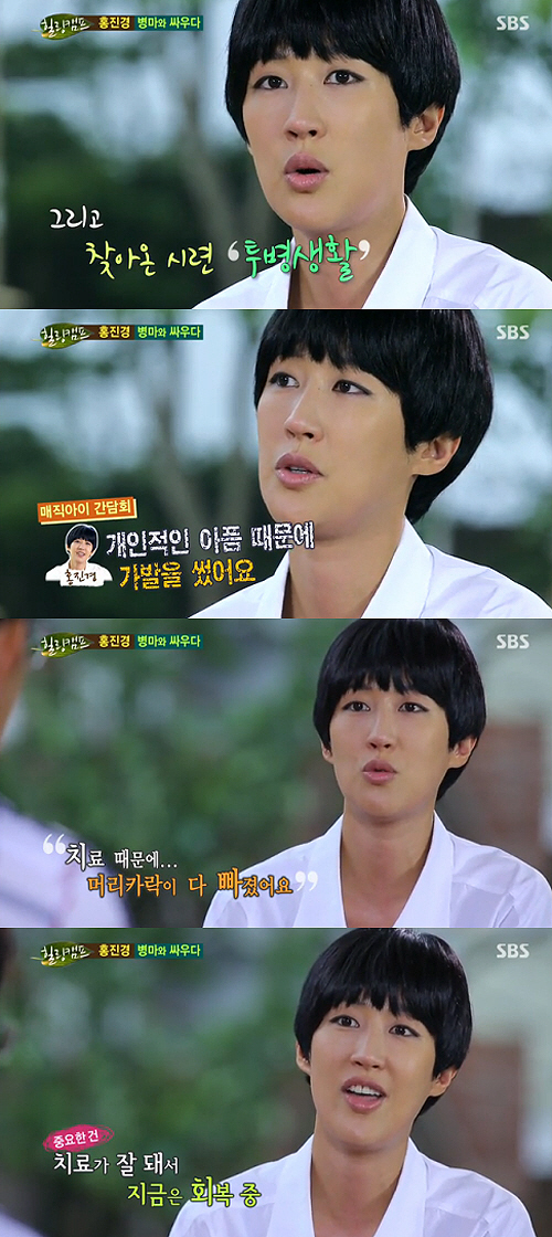 홍진경은 "지금도 어떤 병명에 대해서 자세히 말씀드리고 걱정 끼쳐드리고 싶진 않다. 중요한 건 치료가 다 잘 끝났고, 이제 낫는 일만 남았다고 말씀드리고 싶다. 머리카락이 올라오고 있다"며 긍정적인 마음가짐을 보여 감동을 안겼다.
