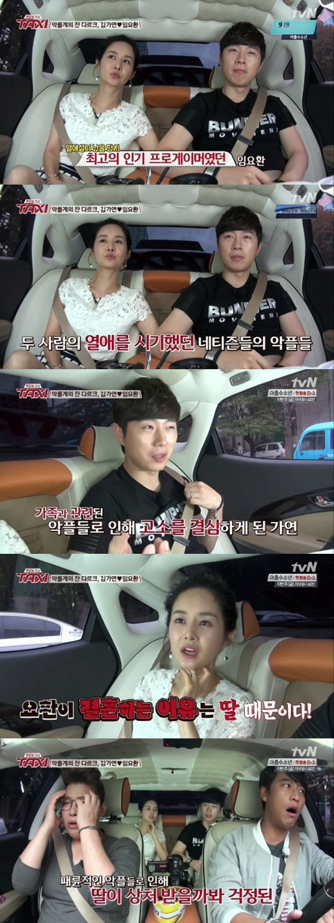 이에 김가연은 "임요환과 처음 열애설이 터졌을 때 당시 임요환이 인기가 많았기 때문에 악플이 있었다. 인신공격성은 아니었지만 가만히 놔두니 없는 소문도 만들어내고 눈덩이처럼 불더라"라고 말했다.