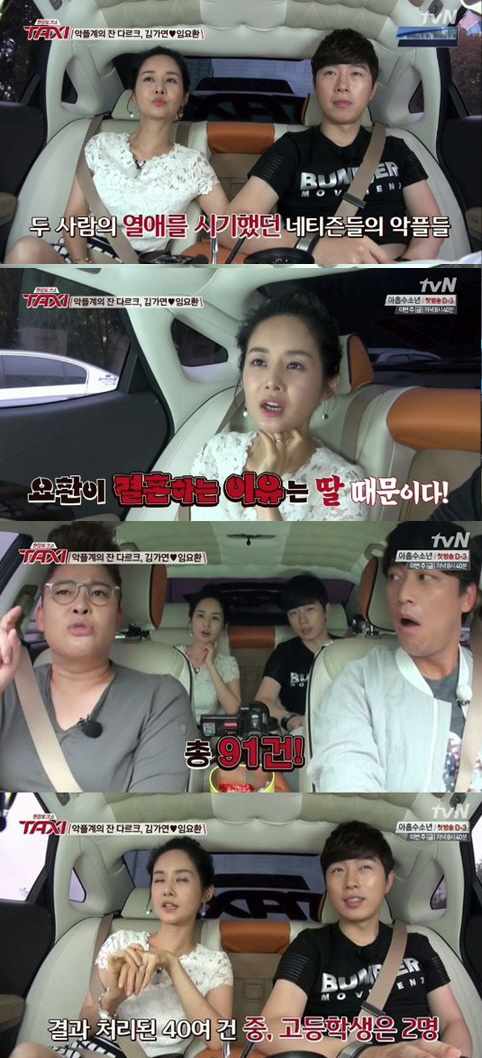 많은 네티즌들은 '택시' 김가연 임요환에 "'택시' 김가연 임요환, 이제는 악플이 줄어서 다행이네요", "'택시' 김가연 임요환, 이제는 악플들이 달리지 않을 것 같네요", "'택시' 김가연 임요환, 11명을 추가한 거 보니 또 악플을 단 사람들이 있었나봐요"등의 반응을 보이고 있다. <스포츠조선닷컴>
