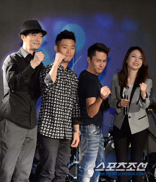 26일 여의도 IFC몰 엠펍에서 가수 왁스의 새 앨범 '스파크' 발매 기념 쇼케이스 행사가 열렸다. 가수 왁스와 한미 합작 프로듀싱 그룹 엠버글로우(Ember Glow)가 함께 한 이번 프로젝트 앨범은 26일 정오 발매됐다. 왁스와 프로젝트 앨범 '스파크'를 발표한 프로듀싱 그룹 엠버글로우는 신예 작곡가 홍준석과 미국의 유명 팝 밴드 더 콜링(The Calling) 출신의 빌리 몰러(Billy Mohler)로 구성된 팀이다. 쇼케이스를 찾은 윤건, 개리, 이기찬이 왁스와 함께 기념 포즈를 취하고 있다. 여의도=송정헌 기자 songs@sportschosun.com/2014.08.26