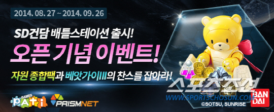 파티게임즈는 이번 'SD건담 배틀스테이션'의 출시를 기념해 27일부터 9월 26일까지 4주간 이벤트를 실시하고 다양한 상품을 선물한다. 먼저 전용 페이지를 통해 이벤트에 참여한 유저 전원에게는 핵심 아이템으로 구성된 '자원종합팩B'를 지급하고 추첨을 통해 실제 인기 프라모델인 '베앗가이Ⅲ'를 선물한다.