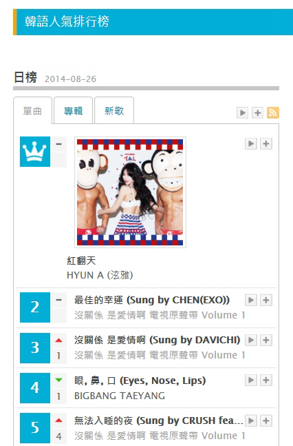 지난 21일 케이케이박스 차트에 첫 진입한 현아의 '빨개요'는 대만 현지에서 발매 된 지 4일여 만에 K팝 신곡차트, 싱글차트에서 각각 정상을 차지하며 이름을 올렸다.