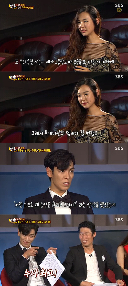 이하늬와 최승현의 인연에 대해 물었고, 최승현은 "사실은 하늬 누나가 YG연습생이었다. 그래서 2NE1 멤버가 될 뻔했다""고