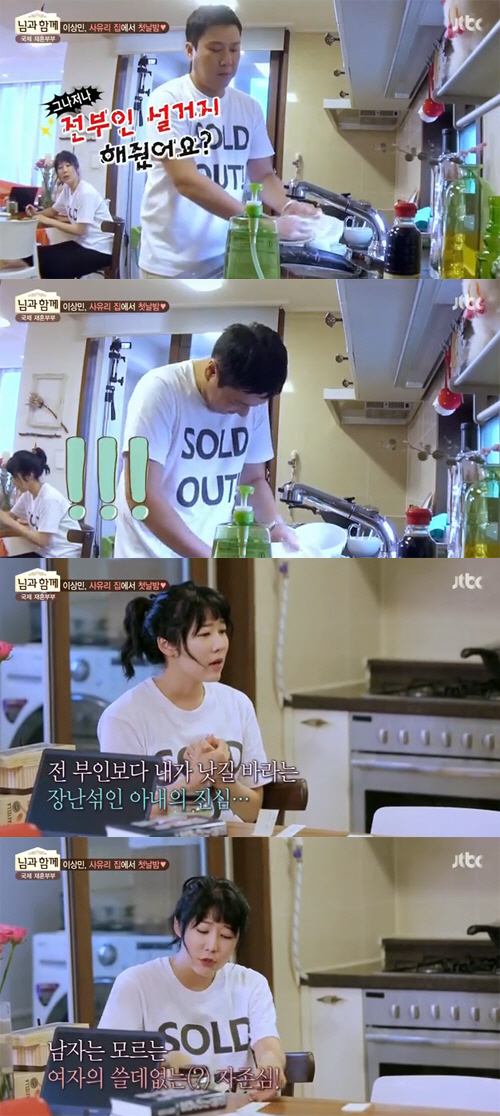 이날 사유리는 이상민에게 설거지를 부탁했다. 이상민이 설거지하는 동안 집안일 역할 분담 리스트를 작성하던 사유리는 갑자기 "전 부인한테 설거지해줬느냐"고 질문했다.