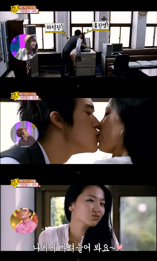 화면엔 홍진영이 하석진과 복사기 위에서 격렬하게 키스를 하는 수위 높은 스킨십이 담겨 있다.