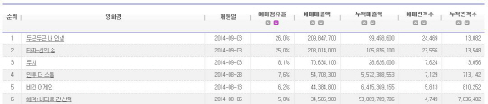 최민식의 할리우드 도전작 '루시'가 3위, '인투더스톰'이 예매율 4위로 뒤를 이었다. 정현석 기자 hschung@sportschosun.com