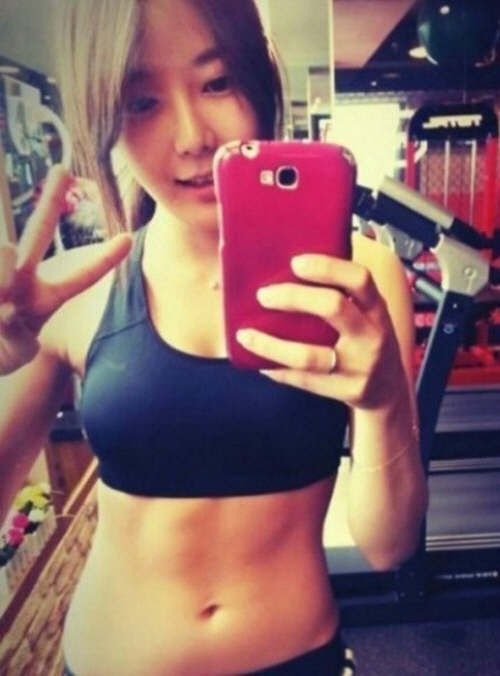 공개된 사진 속 아미는 검정 브라탑 운동복에 탄탄한 복근을 자랑하고 있어 눈길을 끌었다.