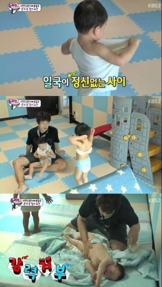 지난달 31일 방송된 KBS2 '해피선데이-슈퍼맨이 돌아왔다'에서는 쌍둥이에게 옷을 입히느라 고군분투하는 송일국의 모습이 그려졌다.