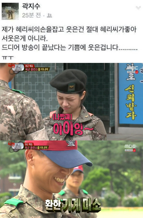 걸스데이 멤버 혜리의 애교에 '환한 기계 미소'를 보인 곽지수 분대장이 SNS에 해명 글을 게재했다.