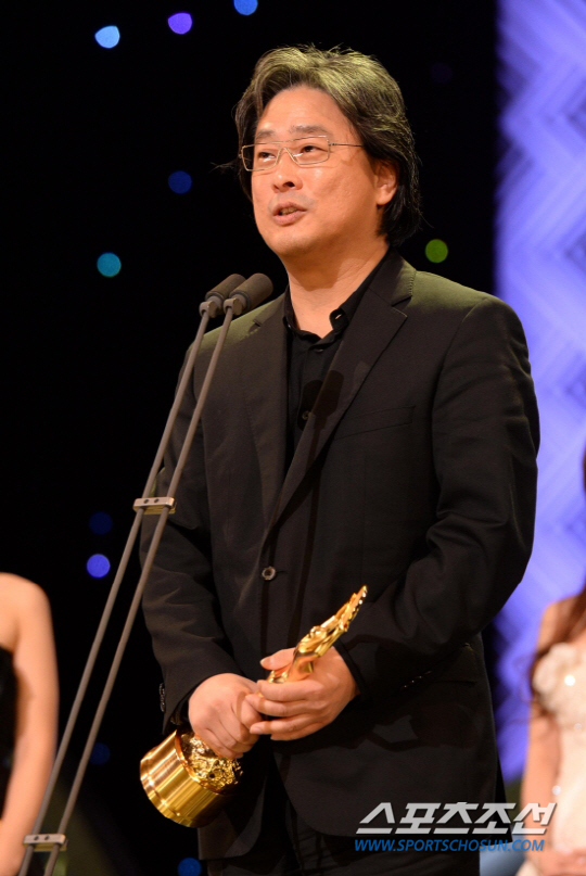 봉준호 감독을 대신해 청룡영화상 감독상을 수상한 뒤 소감을 밝히고 있는 박찬욱 감독. 최문영 기자