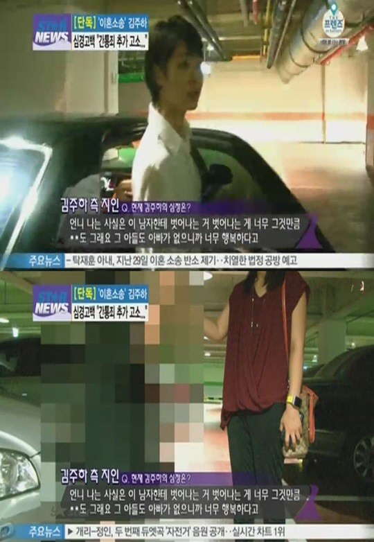 2일 방송된 케이블TV Y-STAR '생방송 스타뉴스'에서는 지난달 28일 서울 가정법원에서 열린 변론기일에 참석한 김주하의 인터뷰가 전파를 탔다.
