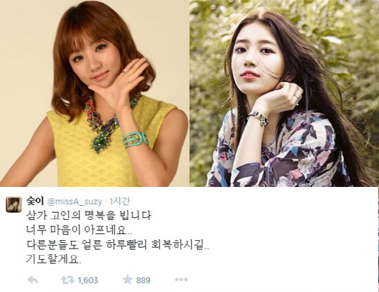 걸그룹 레이디스 코드 멤버 고은비(23)가 빗길 교통사고로 사망한 가운데, 미쓰에이 멤버 수지가 애도의 글을 남겼다.