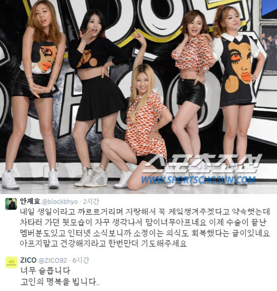 레이디스코드 멤버 고은비(23)의 사망소식이 전해진 가운데, 블락비 멤버 지코와 재효가 애도의 뜻을 밝혔다.
