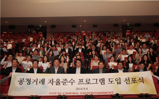 롯데시네마가 4일 롯데시네마 월드타워에서 공정하고 투명한 기업활동의 자발적 전개를 통한 사회적 책임의 실천을 위해 공정거래 자율준수 프로그램 (CP) 도입 선포식을 진행했다.