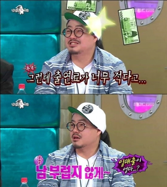 이날 MC들은 노유민에게 "정해진 대로 출연료가 일괄 지급되는데 노유민이 너무 적다고 했다. 일 매출보다 적으면 안 나가겠다고 했다더라"고 폭로했다.
