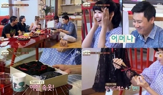 이날 '미수다' 멤버들은 사유리 이상민 부부를 위한 선물을 건넸고, 상자 속에는 야한 속옷과 T팬티, 수갑 등이 들어 있어 눈길을 끌었다.