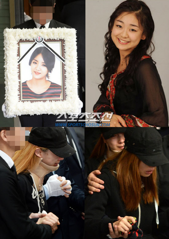 발인 예배가 진행되는 동안 고인을 부르짖는 울음소리가 들려 주변을 더욱 슬프게 했다는 발인식에는 특히 멤버 애슐리와 주니가 깁스를 한 채 참석해 눈길을 끌었다. 몸을 제대로 가누지 못한 애슐리와 주니는 망연자실한 표정으로 지인들의 부축을 받으며 하염없이 눈물만 흘린 채 동료의 마지막 길을 배웅했다.