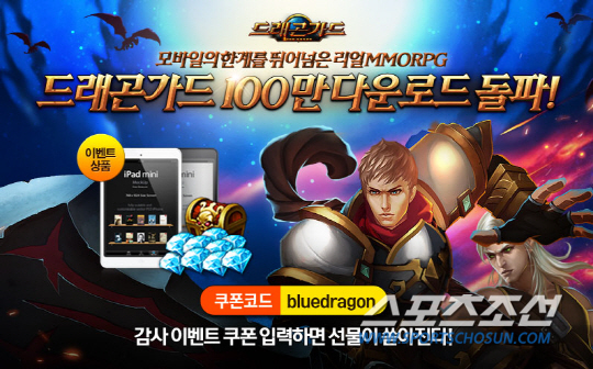 넷마블은 실시간 모바일 대작 MMORPG '드래곤가드 for Kakao(이하, 드래곤가드)'의 100만 다운로드 돌파를 기념해 이벤트를 진행한다.
