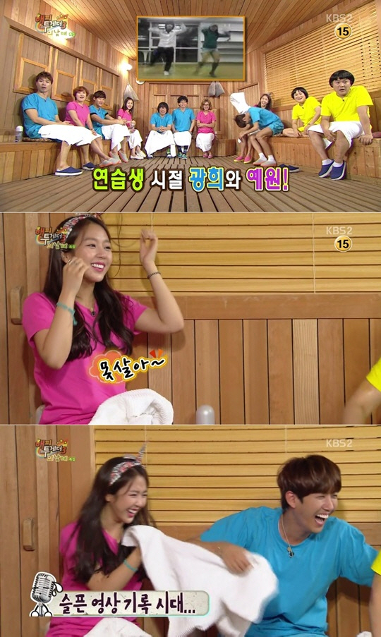 이후 '해피투게더' 제작진은 광희와 예원의 연습생 시절 모습을 담은 영상을 공개했다. 이에 광희는 성형 수술 전의 자신의 모습에 놀라고, 예원은 다이어트 전의 자신의 모습에 놀라며 서로 당황했다. 이에 박명수는 "예원이가 단식원 갈 만 했다"고 돌직구를 날려 웃음을 자아냈다.