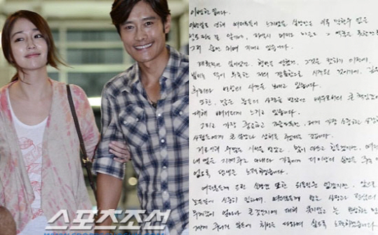 배우 이병헌이 최근 동영상 협박 사건으로 물의를 빚은 것에 대해 자필로 사과문을 게재했다.
