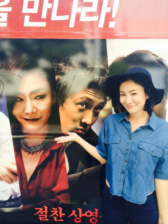 공개된 사진에는 '타짜2' 포스터 속 자신이 열연함 캐릭터 작은 마담 앞에서 해맑은 미소를 짓고 있는 박효주의 장난스러운 모습이 담겨 있다.