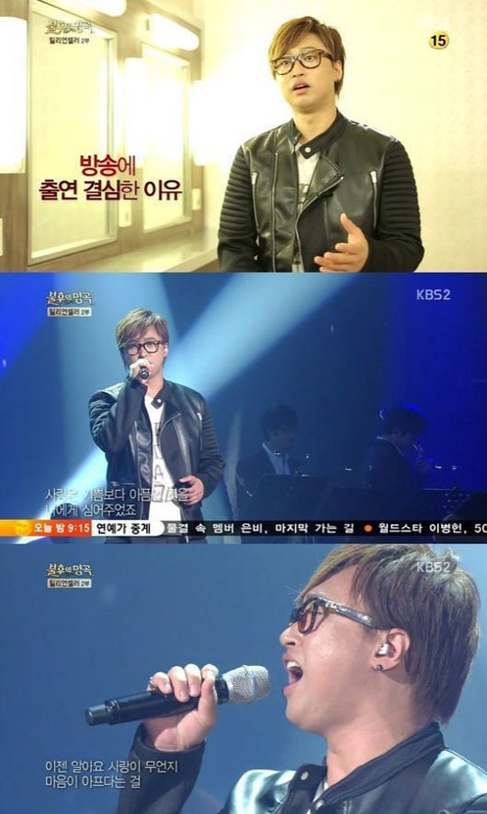 이 후 무대선 그는 김현식의 '사랑했어요'를 선보였다. 흘러간 시간만큼 외모는 달라졌지만 듣는 것만으로도 감동적인 그의 목소리는 여전했다. 눈을 감고 노래를 곱씹으며 멜로디를 피부로 느끼는 듯한 그의 모습이 돋보였고 관객도, MC들도 그의 공연에 뜨거운 박수를 보냈다.
