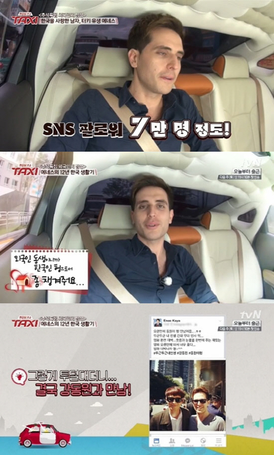 한편 많은 네티즌들은 "택시 에네스카야 강동원과 이런 친분이", "택시 에네스카야 강동원 고수 친분 연예인 맞네", "택시 에네스카야 한국사람이야 터키 사람이야", "택시 에네스카야 한국생활 능숙하네", "택시 에네스카야 예능감 충만하다", "택시 에네스카야 강동원과 인증샷 부러워"등의 반응을 보이고 있다. <스포츠조선닷컴>