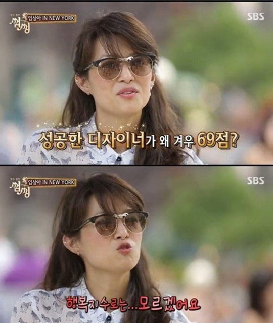 오랜만에 국내 방송에 출연한 임상아는 이날 자신의 뉴욕 삶에 대해 "69점"이라고 이야기했다. "열심히 살았다는 것에 대해서는 90점을 줄 수 있을 것 같은데 행복지수는 잘 모르겠다. 그래서 69점이다"라고 말해 눈길을 끌었다.