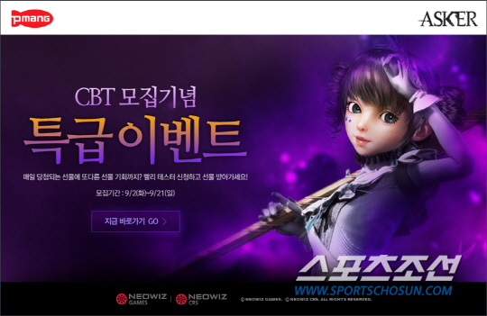 네오위즈게임즈는 자회사 네오위즈씨알에스에서 개발중인 대작 온라인 액션 RPG '애스커'에서 1차 비공개 시범 테스트(이하 CBT) 참가자 모집 기념 이벤트를 21일까지 진행한다.