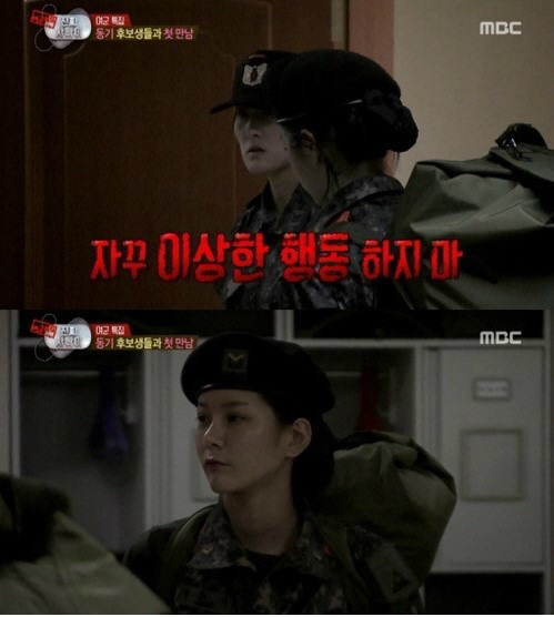 지난 7일 방송된 MBC '일밤-진짜사나이' 여군 특집에서는 홍은희, 라미란, 김소연, 맹승지, 혜리, 지나 , 박승희 등이 부사관 학교에 입소하는 모습이 전파를 탔다.