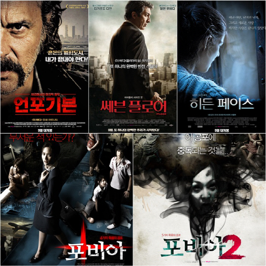 '익스트림 무비열전'에서는 스페인의 아카데미로 불리는 고야영화제에서 작품상과 감독상을 포함한 6개 부문을 수상하며 개봉과 동시에 박스오피스 1위에 오른 '언포기븐'과 스페인을 대표하는 명품배우 '엘 시크레토 - 비밀의 눈동자'의 리카르도 다린과 '더 바디' 벨렌 루에다의 출연으로 기대감을 더하는 반전스릴러 '쎄븐 플로어', 그리고 개봉 전부터 국내 네티즌들에게 높은 기대평과 함께 호평을 받으며 두 여배우의 매력대결이 돋보이는 탄탄한 스토리의 '히든페이스', 마지막으로 '디아이', '셔터', '샴'의 태국을 대표하는 공포 전문 제작진이 뭉쳐 화제가 된 '포비아', '포비아 2'까지 작품성과 흥행성을 겸비한 5편의 스릴러, 공포 영화들이 포진되어 있다.