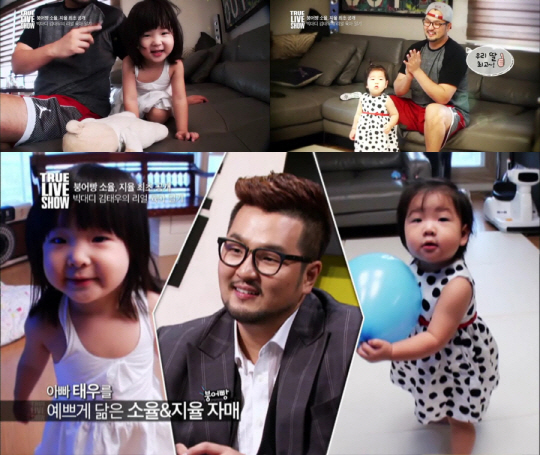 이날 방송에서는 김태우의 모습을 그대로 빼다 박은 듯한 두 딸 소율, 지율의 모습이 공개돼 눈길을 사로잡는다. 누가 봐도 김태우의 딸인 것을 알아차릴 정도로 붕어빵인 데다가, 천진난만하면서도 사랑스러운 애교를 선보이는 모습이 절로 탄성을 자아내는 것.