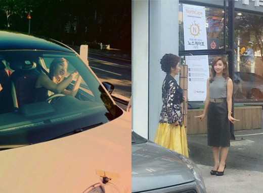 공개된 사진 속 이유리는 촬영 중 차 안에서 밝게 웃으며 밖의 사진을 찍고 있다.