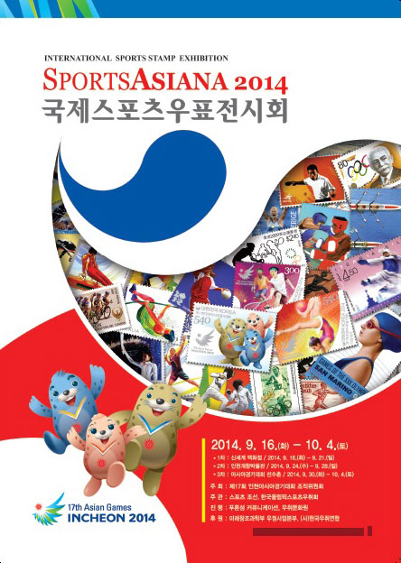 아시아인의 축제, 제17회 인천 아시아경기대회를 맞아 국제스포츠우표전시회(SPORTSASIANA 2014)가 열린다. 대회 조직위원회가 주최하고, 스포츠조선이 주관하는 이번 전시는 신세계백화점 인천점(9월16일~21일)에서 테이프를 끊은 뒤 인천개항박물관(9월 24일~28일)을 거쳐 아시아경기대회 선수촌(9월 30일~10월 4일)으로 열기를 이어간다.