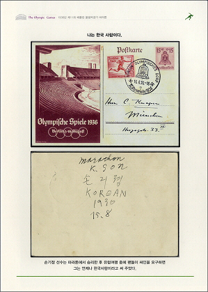 ◇허진도 작가의 '베를린의 함성'(일부). 손기정의 'KOREAN' 친필 사인이 보인다. 이미지제공=우취문화원