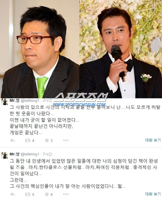 한편 강병규는 지난해 이병헌과의 갈등으로 트위터를 중단했지만 최근 이병헌과 다희, 모델 이지연 협박 사건을 계기로 트위터 활동을 재개했다.