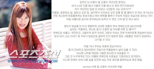 김부선 난방비 사건, 방미 블로그 공개 비난