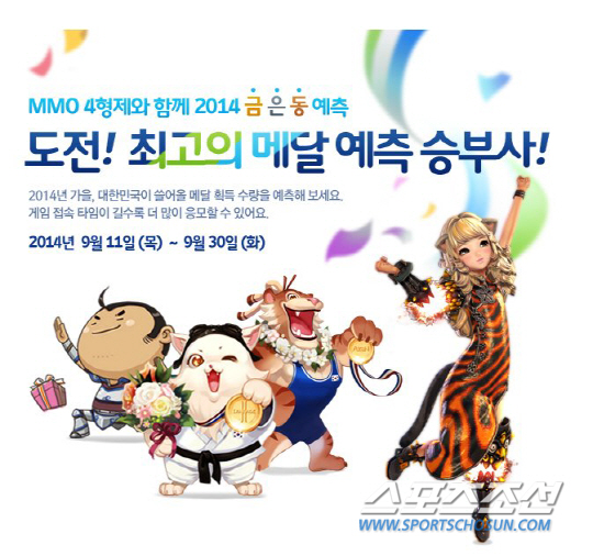 엔씨소프트는 MMO 4형제('리니지', '리니지2', '아이온', '블레이드&소울')에서 인천아시안게임 개막 기념으로 '도전! 최고의 메달 예측 승부사' 이벤트를 진행한다.