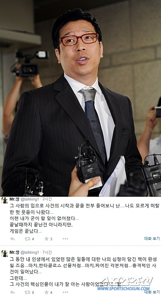 특히 강병규는 15일 새벽 "그 동안 내 인생에서 있었던 많은 일들에 대한 나의 심정이 담긴 책이 완성될 즈음… 마치 산타클로스 선물처럼… 마치 짜여진 각본처럼… 충격적인 사건이 일어났다. 그런데 그 사건의 핵심인물이 내가 잘 아는 사람이었다니…"라는 글을 게재했다.