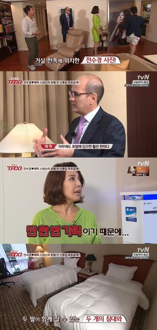16일 오후 방송된 케이블채널 tvN '현장토크쇼 택시'에서는 에릭 스완슨 전수경의 신접살림이 공개됐다.