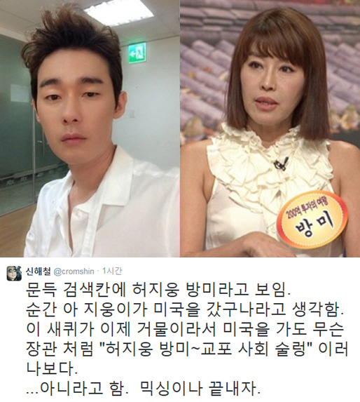 이는 허지웅이 방미의 김부선 비난 글을 비판하면서 포털 사이트 검색어에 '허지웅 방미'가 뜨자 신해철이 오해를 한 것.