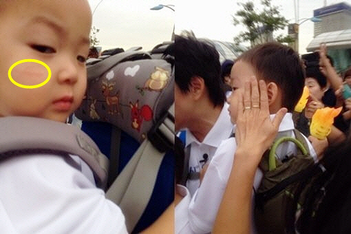 하지만 행사 직후 온라인상에는 '성화 봉송 현장에 있던 사람들 때문에 민국이 얼굴에 상처가 났어요. 이런 일 없게 널리 퍼뜨려 주세요' 라는 글과 두 장의 사진이 게재됐다.