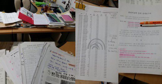 공개된 사진은 김부선이 난방비 비리를 파헤치기 위해 유관 기관에 협조 요청한 공문과 스크랩한 보도자료, 이웃 주민들을 통해 얻은 리서치 자료 등이다.